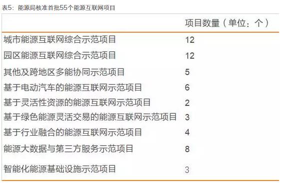 能源局近期发布《关于公布首批“互联网+”智慧能源(能源互联网)示范项目的通知》,首批示范项目共55个,首批示范项目原则上应于2017年8月底前开工,年底建成。示范项目优先使用国家能源规划所确定的各省(区、市)火电装机容量、可再生能源配额、碳交易配额、可再生能源补贴等指标额度。