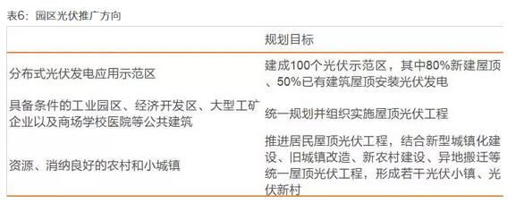 分布式光伏示范园区应用是《太阳能发展“十三五”规划》重点鼓励的一个方向,如图所示。此次示范项目出台,多处风光储微网、光伏+充电车棚等创新模式列入。