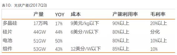 按照目前硅料价格水平以及国内核心硅料厂商的成本分布,多晶硅环节毛利率水平非常高,部分企业目前已经超过50%。按照目前装机需求,以及多晶硅产能释放进度,到2018年底,多晶硅环节毛利率水平依然维持高位。