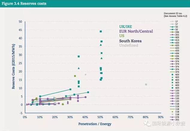 风电光伏的系统成本首先要考虑相应增加备用电源容量(reserverequirements)。如果风电光伏发电占到电力需求的30%情况下,因为备用电源要求增加的成本约为5英镑/兆瓦时(合人民币4.3分/千瓦时)。