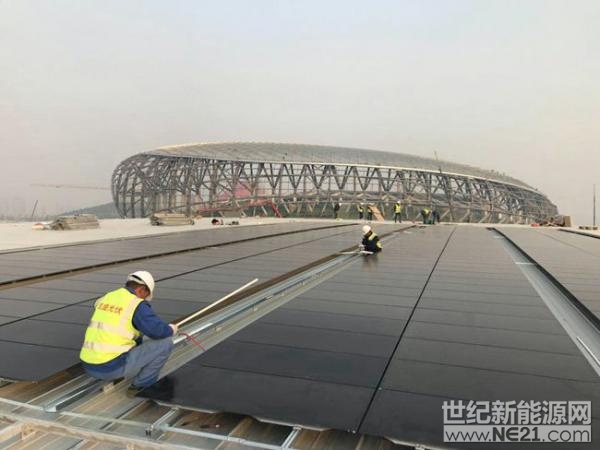 2018年安徽省运会主场馆——蚌埠奥体中心在建筑表面使用铜铟镓硒薄膜太阳能组件,满足场馆的用电需要。