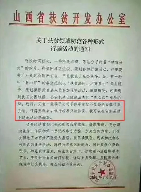 2017年7月,山西省发文,警惕零首付光伏电站骗局