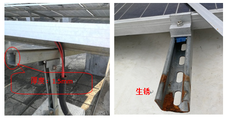 2、 支架厚度不足、镀锌厚度不够导致生锈