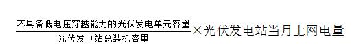 若具备低电压穿越的光伏电站仍在低电压穿越范围内发生脱网,自脱网时刻起该光伏发电站同型机组禁止并网,直至完成低电压穿越改造。同时在该光伏发电站同型机组重新完成整改并提供检测认证报告前,当月按以下公式考核: