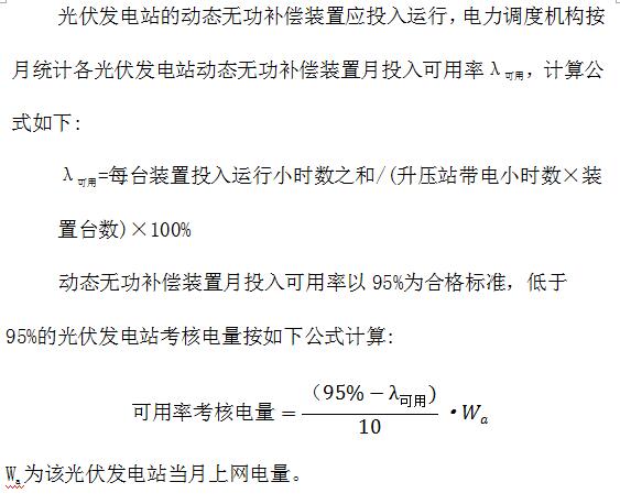 (二)动态无功补偿装置性能(包括容量配置和调节速率)不满足电网要求的光伏发电站在完成整改前,每月按当月上网电量的1%考核。