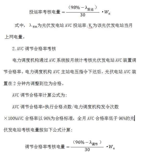 AVC投运率以98%为合格标准,全月AVC投运率低于98%的光伏发电站考核电量按如下公式计算: