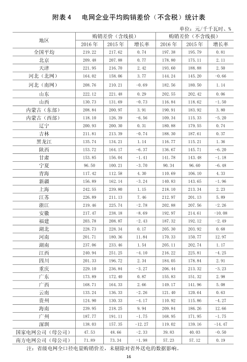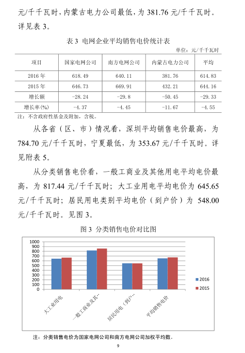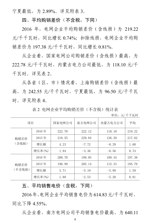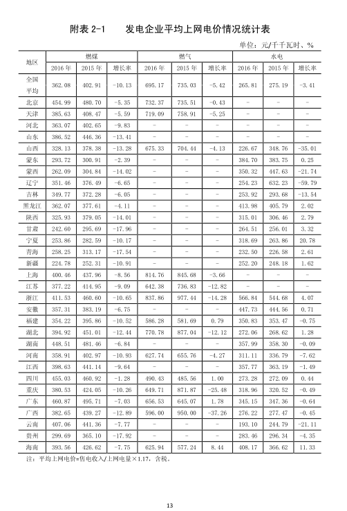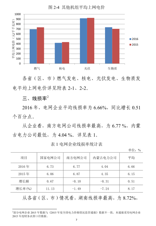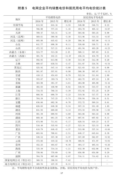国家能源局:2016年全国电力价格情况监管通报 光伏平均上网电价同比下降0.93%