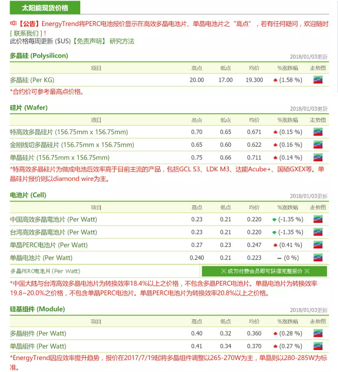 进入1月后,来自终端市场的需求虽然较12月有所下降,但因硅料仍然没有库存,因此本周硅料价格并没有太大的变化。多晶硅片用硅料价格在RMB147-154/kg,单晶硅片用之硅料价格在RMB153-158/kg。