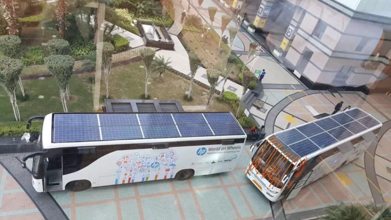 通过车顶上的光伏系统,天合组件助力惠普印度“计算机知识普及”活动,光伏大巴成功解决了移动教学上电力供应的问题,在保证大巴正常工作的同时又减少了二氧化碳排放对环境的污染。