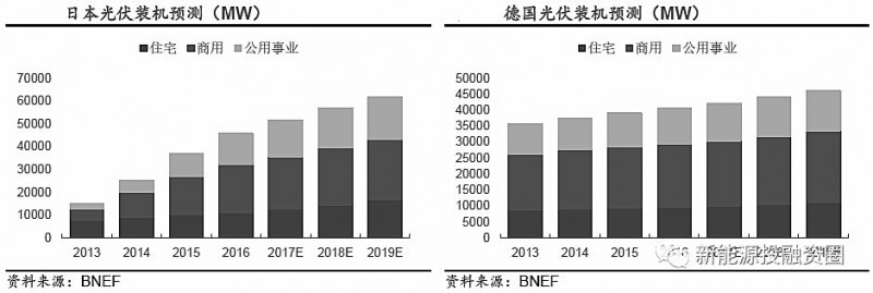 引入竞价制度,总体需求稳定:日本于2017 年10 月引入太阳能竞标制度,德国则终结FiT 补贴,两国积极实行竞价代替补贴政策,推动光伏平价上网。二者政策波动不大,预计未来装机量仍会稳中有增。