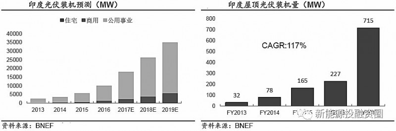 受到政策鼓励、上网电价低等影响,印度明年整体装机会有大幅度提升。其中屋顶光伏