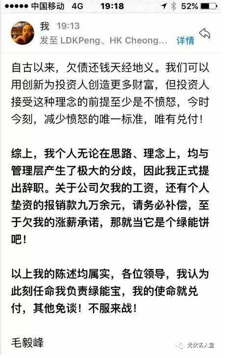 据了解自绿能宝2017年4月10日曝出平台承兑困难,到6月12日被曝出北京办公室空无一人,再到后来的投资机构曝出管理人员绿能宝兑付负责人毛毅峰辞职,兑付暂停。