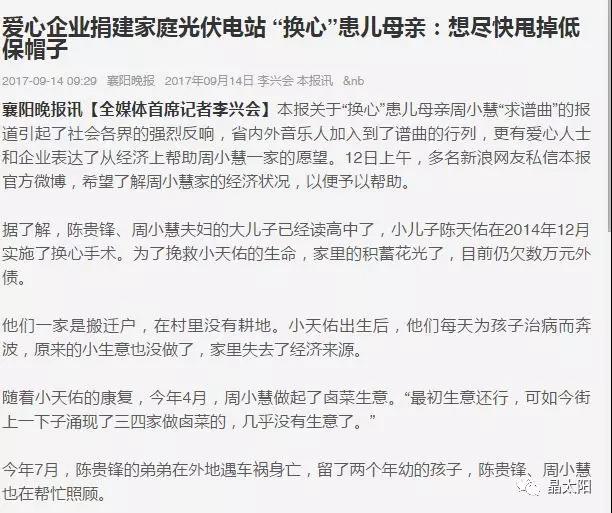 世界上最珍贵的莫过于生命,但是如果只有金钱才能把生命留下的话,这个时候我会说最珍贵的就是金钱了。一开始小晶就给大家介绍了一个爱心企业捐建家庭电站拯救孩子生命的新闻,没错,光伏不仅仅在发家致富和绿化环境的起到重要的作用,在社会困难面前也无所畏惧,为苦难的特殊人群免费捐赠一座光伏电站,让他们生活减少一点物质上的困难。