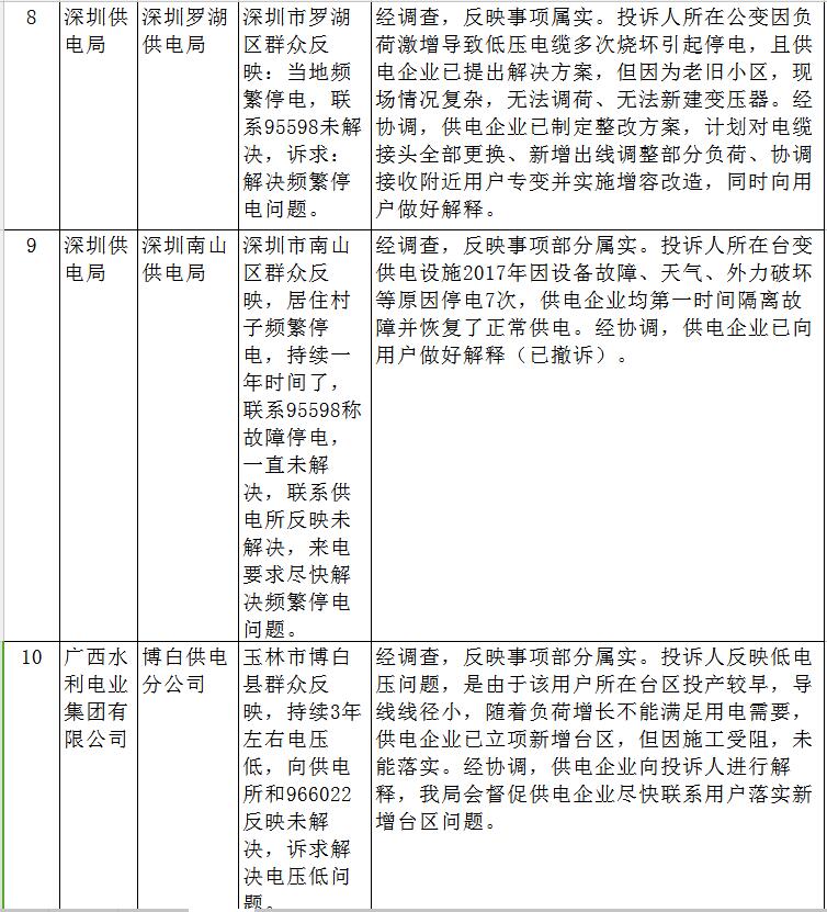 南方能源监管局已要求各供电企业认真分析用户投诉原因,逐一对照用户投诉反映的问题,采取相应的措施,进行整改,避免同类问题反复投诉。对与事实有出入的投诉,南方能源监管局在回访用户时,向用户作了解释和说明。