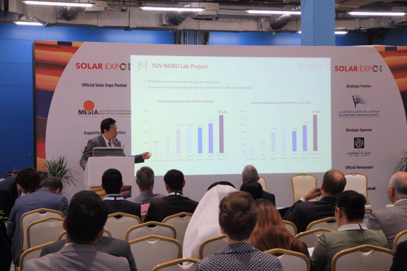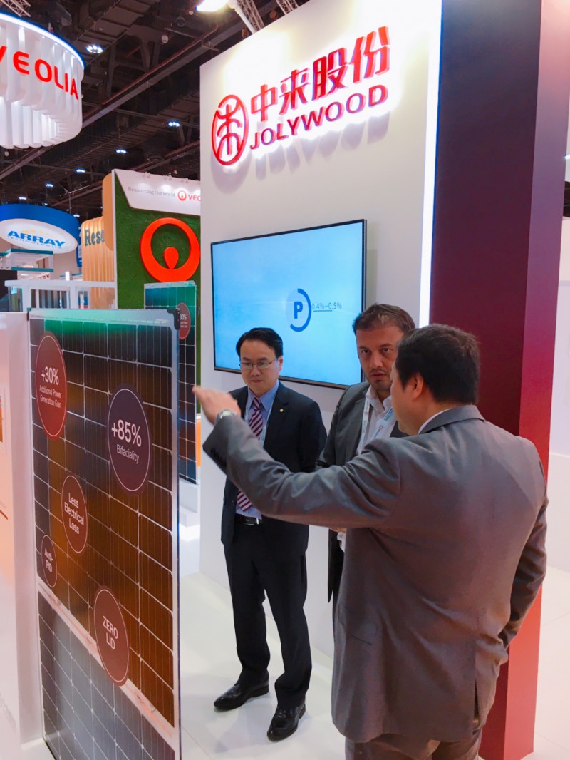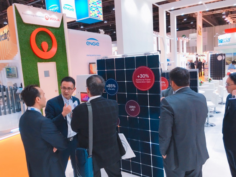 作为2018年布局海外市场布局的重要一站,中来还面向中东北非市场展示出了多款N型双面电池、组件等重磅产品。在产品优势上,除了发电量明显高于N型单面组件和P型单晶组件,N型双面组件还兼具寿命长、抗PID能力强、光衰减几乎为零、弱光发电性能好及应用场景丰富等优点。