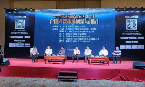 本次会议除了主题演讲以外,现场还进行了关于“户用光伏市场前景与挑战”主题对话。对话由国合洲际能源咨询院院长王进主持,古瑞瓦特总裁丁永强、正泰新能源户用光伏事业部负责人卢凯、三晶电气总经理欧阳家淦、晶科能源渠道总监孙涛、中国能建广东院副总史磊、爱康广东分公司总经理缪守书等嘉宾参与对话,积极深入探讨户用光伏市场发展前景和挑战。