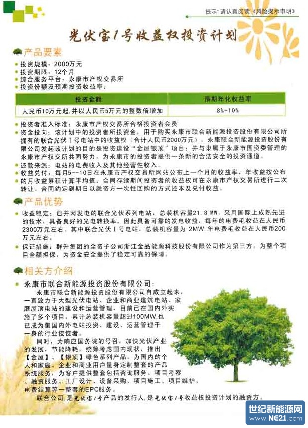 下为“光伏宝”投资产品介绍: