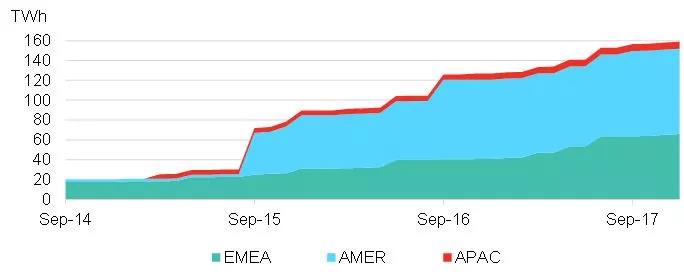 考虑到2017年有35家新公司签约RE100,使得加入RE100的企业总数达到122家,这可能成为未来多年清洁能源购电协议的主要推动力。