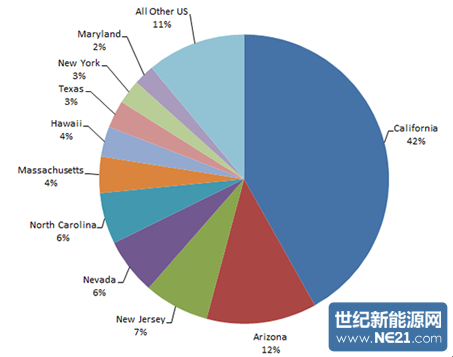 然而,美国市场仍主要依靠几个州来维持吉瓦级的需求水平。在2013年领先的九个州贡献了全美超过85%的光伏需求。因此,如果这些州发生任何意外政策的变化,都会影响到美国光伏市场的增长。