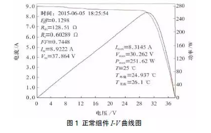 随机选取一块质量正常组件,组件内所有电池的衰减基本一致,对其进行功率测试,I-V曲线平滑曲线如图1所示。