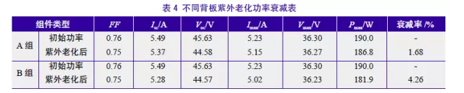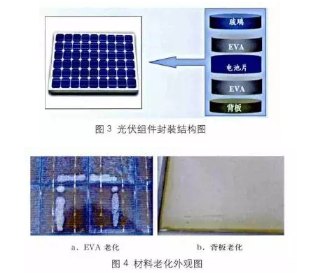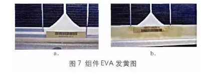 从实验测试结果和具体电站中组件分析可看出,EVA和背板材料的老化、黄变是导致组件功率老化衰减的主要原因,采用高质量的EVA和背板能有效减少组件的功率老化衰减。