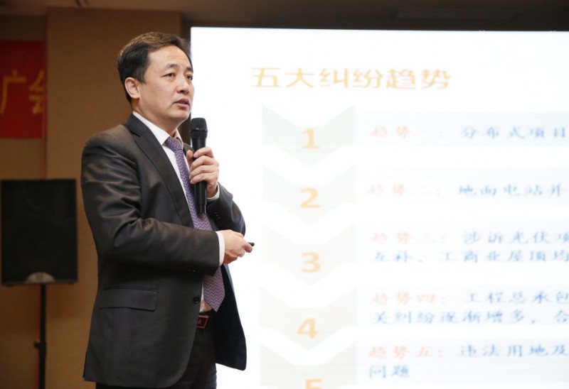 中伦律师事务所合伙人郝利与现场嘉宾分享了分布式电站当中的法律风险与防范,他指出,根据统计数据分析2017年分布式电站纠纷相比前两年明显提升,工程总承包和和组件买卖纠纷持续高发,项目投融资和并购项目纠纷逐渐增多,合同能源管理纠纷初露端倪。他强调,在安装屋顶光伏系统时首先要确保屋顶产权。在租赁屋顶时首先要确定屋顶是否是违章建筑,其次,租赁的屋顶有无房产证、是否与房东签订合同、租赁房顶是否经过消防验收、土地是否取得划拨资格证等等也将直接影响到电站业主权益。
