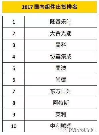 受到国内单晶市占大幅提高的影响,以高效单晶产品见长的隆基乐叶,成为国内组件出货第一名。