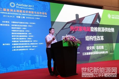 那今天我的演讲,因为时间关系,我就从户用这块跟大家做个简单的沟通。可以看到我的演讲题目,叫《光伏家电站助推能源供给侧结构性改革》。