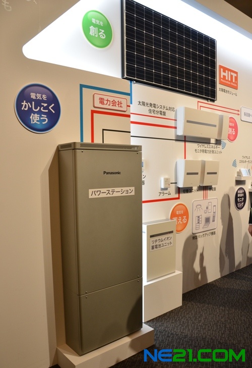 开发品组合使用了容量为4.65kWh的蓄电池“锂离子充电电池组”、松下制造的太阳能电池、以及使太阳能电池和蓄电池的功率调节器功能实现一体化的“PowerStation”。锂离子充电电池组外形尺寸为450mm×600mm×156mm,重60kg,可设置于室内。大约4个小时可充满电。使用了480个目前主要用于笔记本电脑等的圆柱形电池单元“18650”。可充放电次数尚不明确,不过据松下解说员称,“每天最少使用一次,可连续使用10年时间”。PowerStation的外形尺寸为630mm×1500mm×250mm,重65kg,设置于室外。