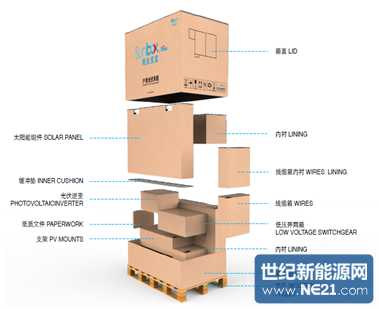 Sunbox阳光宝盒系统包含组件、逆变器、并网柜、支架、线缆等光伏发电必备主体,还包括其他安装过程所需配件,例如安装手册、并网流程等。用户还可自选高级配置,升级产品。天合光能对全系统进行质量控制,大到支架逆变器,小到一颗螺丝,全部由天合光能重新设计和验证,最优化系统发电量和稳定性。Sunbox阳光宝盒提供全系统产品材料,质量可控、配套简单,仅需增加安装服务即可实现系统有效运行;因产品标准化且不涉及部件采购周期,交付运输快捷。
