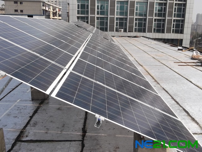 图为新余市现代服务中心18KWp光伏发电项目电池组件方阵