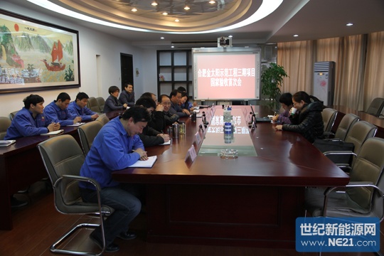 合肥金太阳示范工程三期项目顺利通过国家验收审核,标志着合肥金太阳能源科技股份有限公司申报的金太阳示范工程一、二、三期项目均成功建设,屋顶光伏电站装机总量已达52.89MW,累计完成率95%以上,位居全国前列。预计年发电量5765万千瓦时,年节约标准煤约19889吨,年减少二氧化碳排放约53700吨。将为合肥金太阳能源科技股份有限公司创造可观的主营收入,更为社会带来显著的环保效益,为合肥市光伏产业大发展,建设低碳环保的现代城市提供有力支撑。