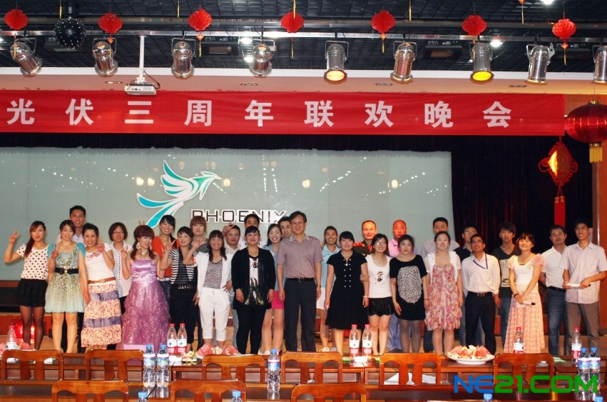 索比光伏网讯:2012年5月8日,凤凰光伏迎来了三周岁生日,为庆祝公司成立三周年,公司以“成长、分享、感恩”为主题,举办了一系列文化活动。类型包括体育比赛、各部门文化展示,娱乐比赛、文艺晚会等活动,公司各部门积极参与,展现了公司全体员工风雨同舟,乐观向上,团结奋进的凤凰人精神面貌。