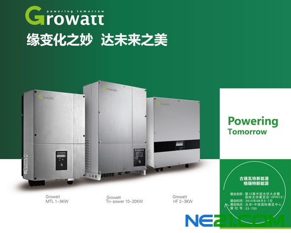 展会期间古瑞瓦特新能源将向大家展示Growatt PC 500TL 、Growatt 10000UE、Growatt20000UE、Growatt3600MTL、Growatt2500MTL、Growatt2500HF、Growatt3000TL等7款机型及ShinePano、ShineVision、ShineWebbox等3台监控机器。