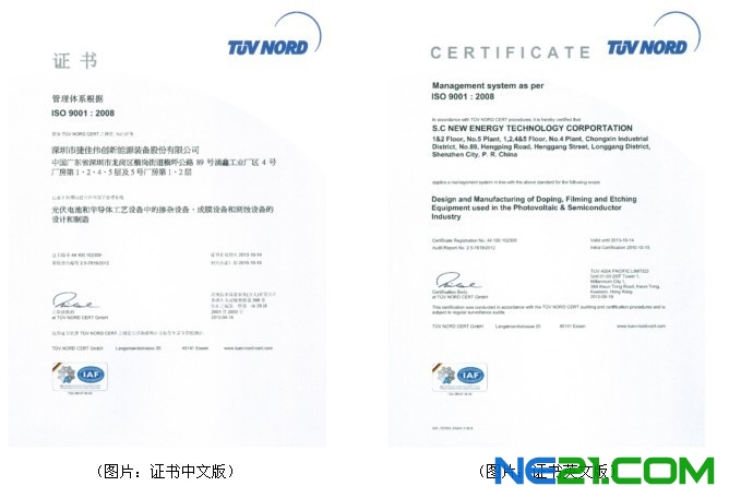 该认证的通过,对捷佳伟创公司具有5大意义:1、使捷佳伟创公司的组织内部管理得到基本完善,使质量管理制度化、体系化和法制化,提高产品质量,并确保产品质量的稳定性。2、进一步表明捷佳伟创公司尊重顾客权益和对社会的负责任态度,增强顾客的信赖度,使顾客放心地采用其产品和服务,提高市场竞争力。通过认证,树立企业良好形象,提高企业知名度。3、通过ISO9001质量管理体系认证,有利于捷佳伟创公司发展外向型经济,扩大市场占有率。这将是政府采购等招投标项目的入场券,是组织向海外市场进军的准入证,是消除贸易壁垒的强有力的武器。4、以此为契机,捷佳伟创公司还将举一反三地建立、完善其它管理制度。5、认证的建立,使捷佳伟创公司可享受到国家的相关优惠政策和重点扶持。ISO9001:2008质量管理体系认证证书的取得,再一次展现了捷佳伟创公司品牌建设及企业文化建设工作上取得的成绩,为实现高利润回报预期,促进公司光伏产品研发、品牌推广和服务落地,提高市场竞争力打下了坚实的基础。