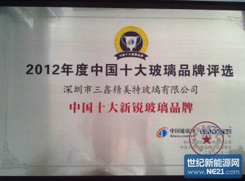 深圳市三鑫精美特玻璃有限公司荣获“中国十大新锐玻璃品牌”