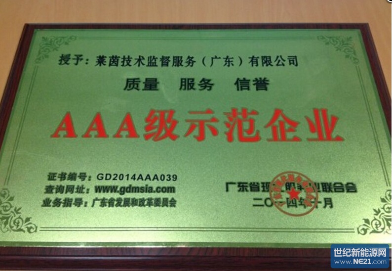 2014年11月7日,广州 – 在由广东现代服务业联合会主办的第五届(2014)华南信用管理论坛上,TÜV 莱茵广东获颁“2013-2014年度广东省质量、服务、信誉AAA级示范企业”称号!TÜV 莱茵获得此殊荣,充分体现了从政府和社会层面对其在2013-2014年度在质量管理、服务质量、企业信誉三个方面的突出表现,以及在行业内的领头、示范作用给予的肯定,更奠定了TÜV 莱茵在检验检测与认证行业的领先地位。公司未来将更加广泛地向全社会宣传检验检测与认证这一高技术服务业对于提高生产和生活质量的重要性。