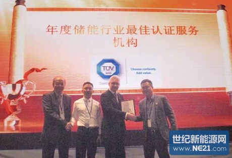 2015年5月10日,全球最大的TÜV机构TÜV 南德意志集团荣获2015中国国际储能电站大会暨颁奖盛典设立的“年度储能行业最佳认证服务机构”奖项。国际储能电站大会向TÜV 南德意志集团可再生能源董事会顾问Volker Blandw 先生颁发了奖杯。