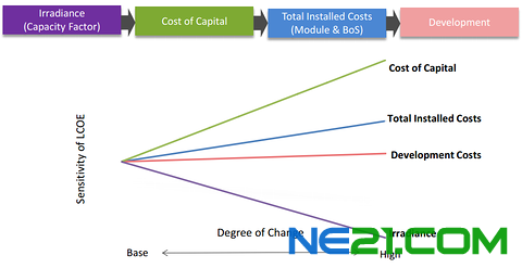 2. 基于太阳能发电的平准化电力成本敏感性分析: