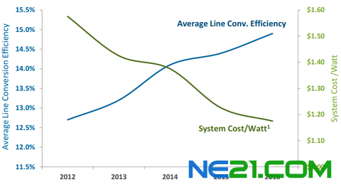1)利用是研发投入和技术优势来实现组件效率路线图,从而建立光伏系统的成本优势: