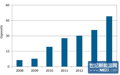 从2013年10月到2014年3月这六个月期间,光伏产业安装量将达到接近22GW,超过在欧洲引领市场高速增长的2005年至2009年期间所有的光伏安装量。