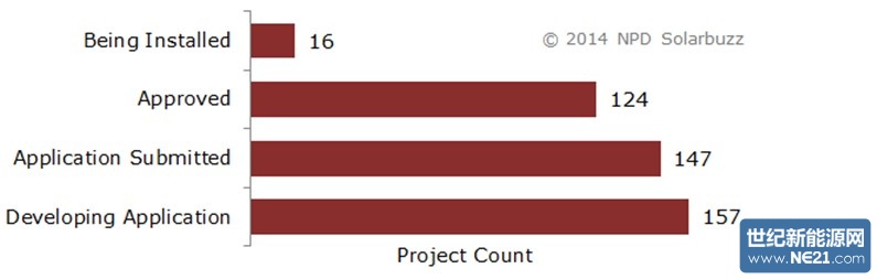到2014年4月底,英国将建成325座以上MW级电站项目,且超过60个不同地点的项目装机容量在10MW以上。