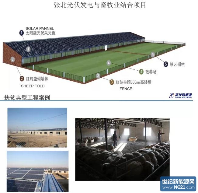 我们跟畜牧业结合的分布式电站:在羊舍上面建分布式太阳能,这是我们在张北地区建的一个试验点。一个简单的算法,1500平米的羊舍作为一个单元,可建一个两百千瓦的光伏屋顶来发电,收益大概每年有20多万。养150只羊,头一年种羊150只,大概1000元一只,大概投15万,羊一年可产两胎,一年下来差不多有450只,留150只做种羊,300只卖掉,便可有一个总收益。也就是投入约300万,一年能有将近50万的收入。