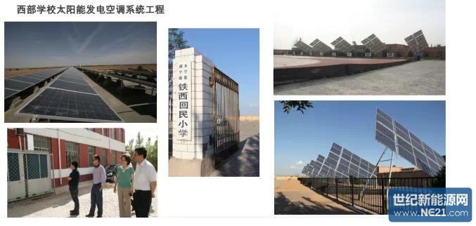 此外,还有一个是扶贫光伏,我们在西部学校的屋顶和操场上安装了太阳能发电站,教室里面安上空调。光伏发电是白天发电,你必须找白天用电的场合,所以学校是非常好的结合点,这是我们觉得非常满意的。一个是给学校带来一个社会效益,这个学校校长跟我们说,他一年政府补贴他20万的煤炭费省下来了,多了一笔活钱。