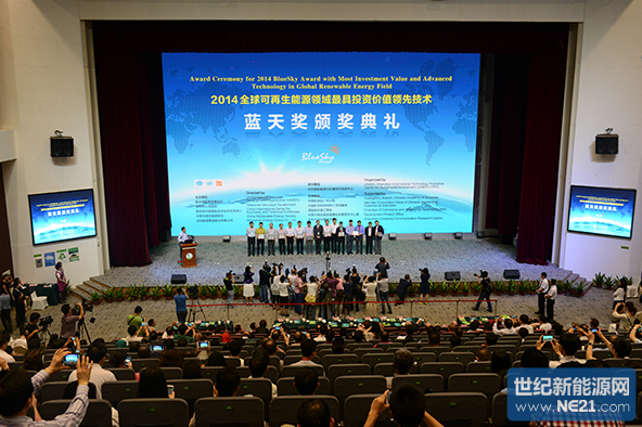 “全球可再生能源领域最具投资价值的领先技术蓝天奖”旨在引导可再生能源在发展中国家规模化应用,以缓解常规化石能源供应短缺以及温室气体效应对全球气候的影响。评选范围包括太阳能、风能、水能、生物质能、地热能、海洋能、氢能等创新技术。其在全球范围内征集可再生能源领域最具产业化投资价值的先进技术,组织来自世界各地的权威专家进行甄别和评估,最终由蓝天奖评审专家委员会评选出“全球可再生能源领域最具投资价值的领先技术”,并颁发“蓝天奖”。自2005年以来,蓝天奖已成功举办了四届,来自德国、美国、加拿大、俄罗斯、白俄罗斯、日本、澳大利亚、巴西、印度、菲律宾和中国等十几个国家的上百项技术参加了评比活动,共评选出38项蓝天奖获奖技术和40项蓝天奖提名奖技术,取得了很有成效的产业化推广成果。