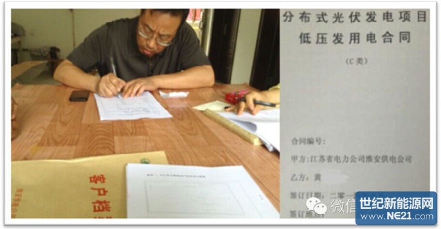 黄老伯孙女儿代其与淮安供电公司签订《分布式光伏发电项目低压发用电合同》,其家庭分布式光伏发电系统正式并入国家电网,可享受双方在合同中约定的发电补贴。