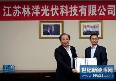 林洋光伏董事长顾永亮先生(左)与 TUV SUD 中区光伏部总监许海亮先生(右)在颁证仪式现场