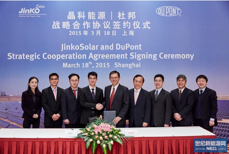 (2015年3月18日,中国上海讯)杜邦公司与光伏行业领导者晶科能源控股有限公司(晶科能源)签署了战略合作协议,旨在共同推进高效可靠太阳能的成长与普及。