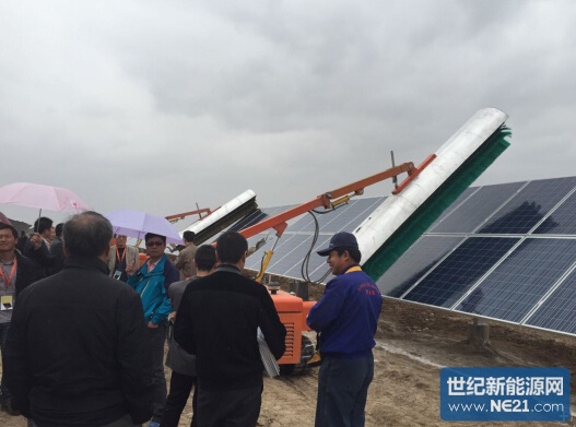当天,北京一家做电站清洗的设备公司在演示无水组件清洁