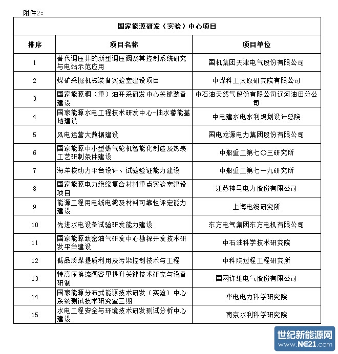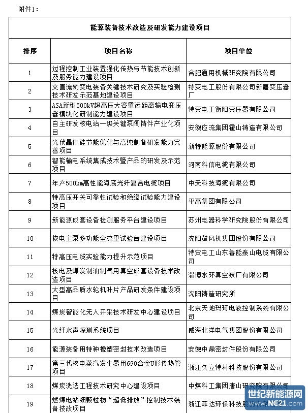 国家能源局关于2015年能源自主创新和能源装备专项 拟安排项目的公示